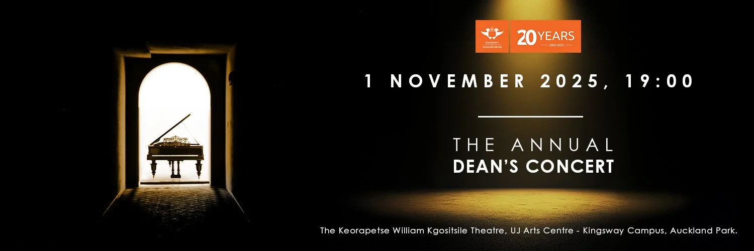 The Annual Dean's Concert returns with all the glamour and musical excellence that make it one of the University of Johannesburg’s most anticipated cultural events. Presented by UJ Arts & Culture, a division of the Faculty of Art, Design and Architecture (FADA), and led by Professor Federico Freschi, Executive Dean of FADA, this year’s concert holds special significance as it celebrates the University of Johannesburg’s 20th anniversary.